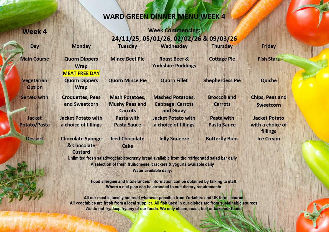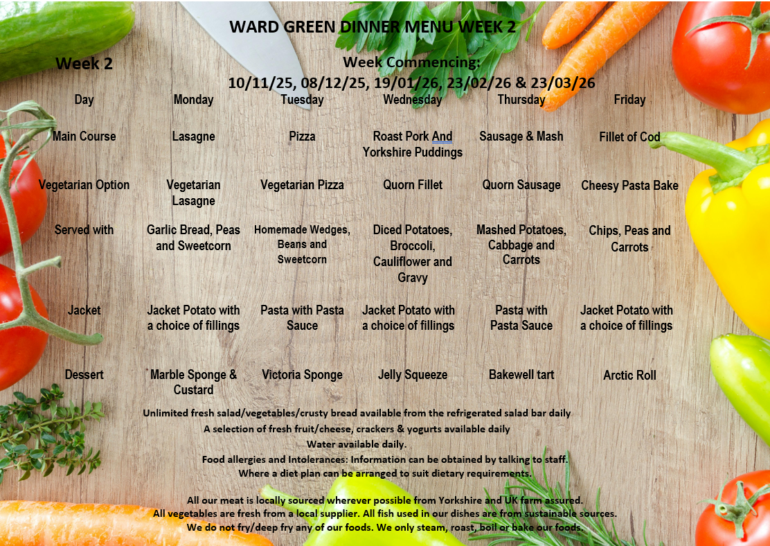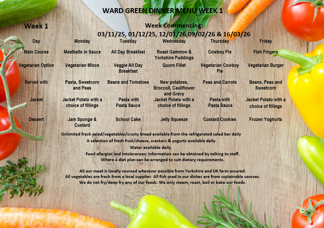 DINNER MENU – OCTOBER 2025 to MARCH 26